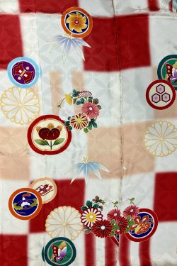 No.13-1018 正絹 クリーム赤 古典