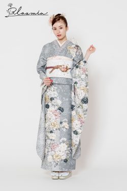 【新品/京友禅】【オリジナルブランド】グレーに広がる牡丹が優しく花開き、ゴールドの装飾で華やかに
