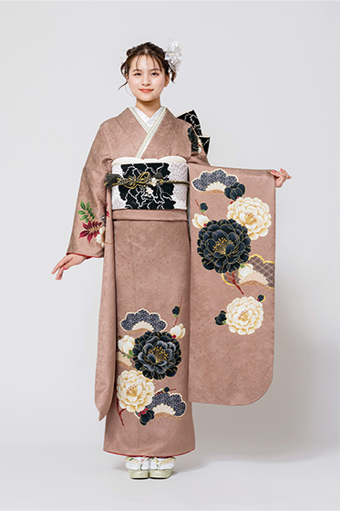 【新品/京友禅】ピンクブラウンにふんわり咲く牡丹の花で女性らしさアップ