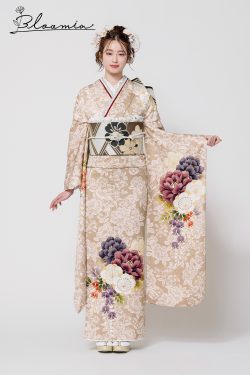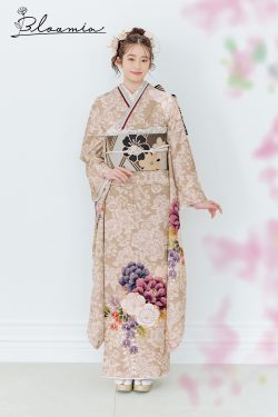 【オリジナルブランド】柔らかいベージュに牡丹の花が咲き、女性らしさをひきだす一着